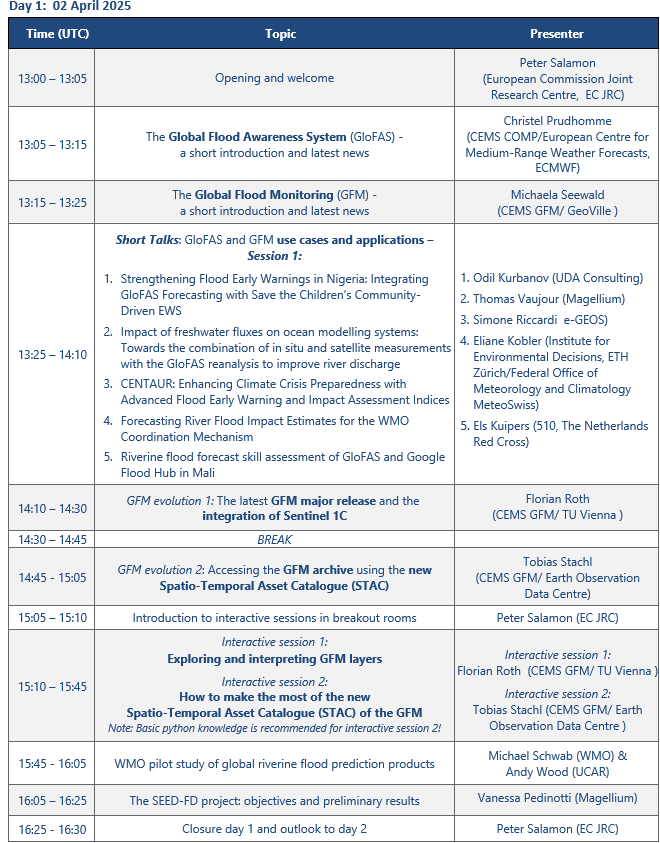 The meeting agenda will feature presentations by CEMS GloFAS and GFM developers, keynotes and ignite talks by GloFAS and GFM users, and hands-on workshops to explore the use of GloFAS and GFM data and products. Participants will be able to discuss their work, connect with CEMS GloFAS and GFM communities, and expand their networks.