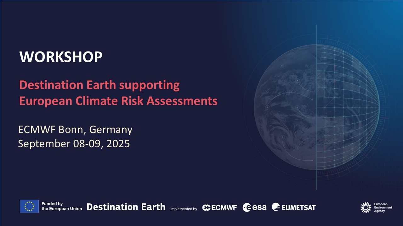 This first workshop aims to define pathways how DestinE could contribute to EUCRA-2 (e.g., specific products, simulations). A key outcome of the workshop will be a shared understanding on the data, tools, and services that could be provided by DestinE to underpin the next EUCRA. The discussion will be based on the reflection paper for EUCRA-2 that considers the expectation of CLIMA and EEA for EUCRA-2.